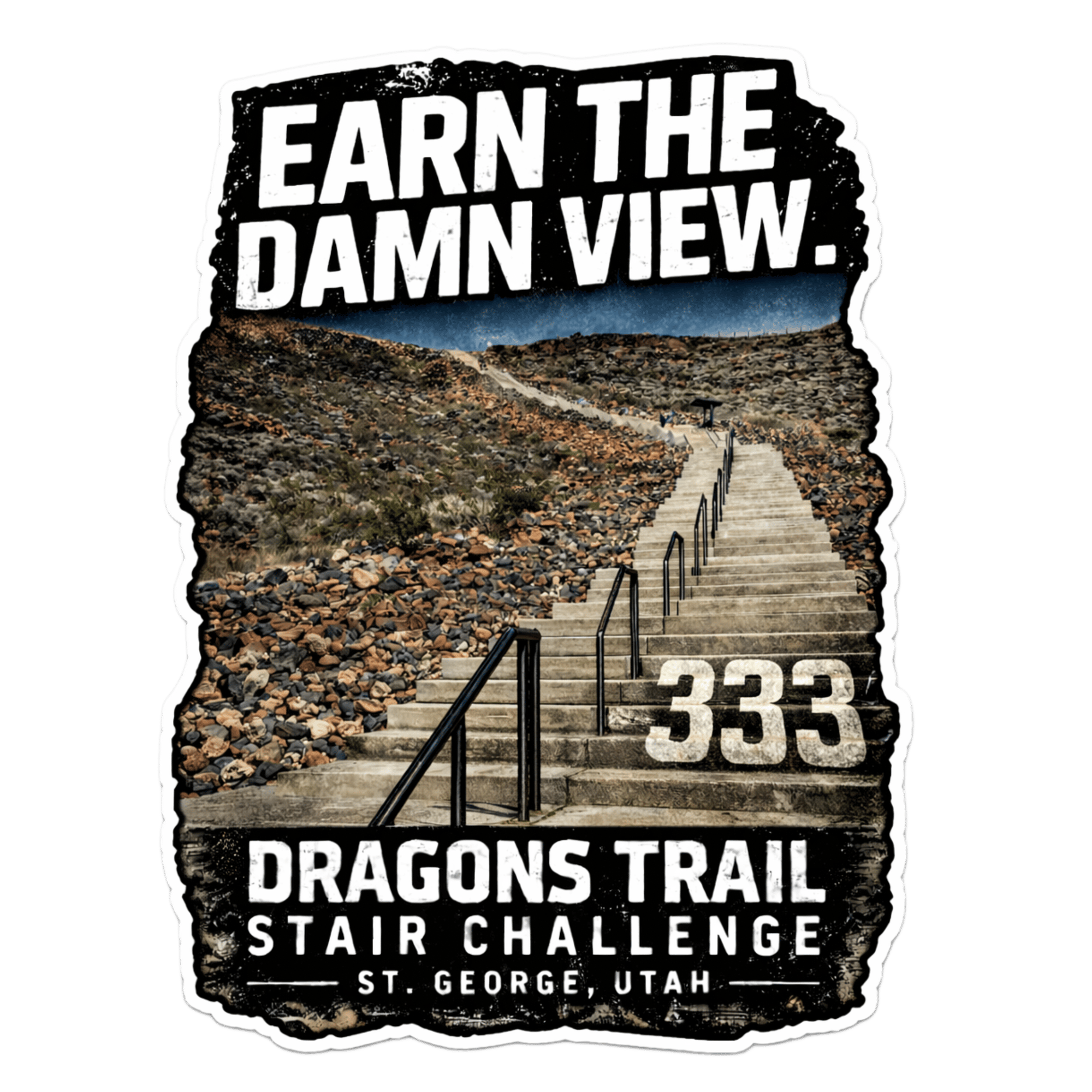 Inspired by the brutal 333-step climb at Dragons Trail in St. George, Utah, this design captures the grind, the burn, and the mindset it takes to keep going when most people quit.