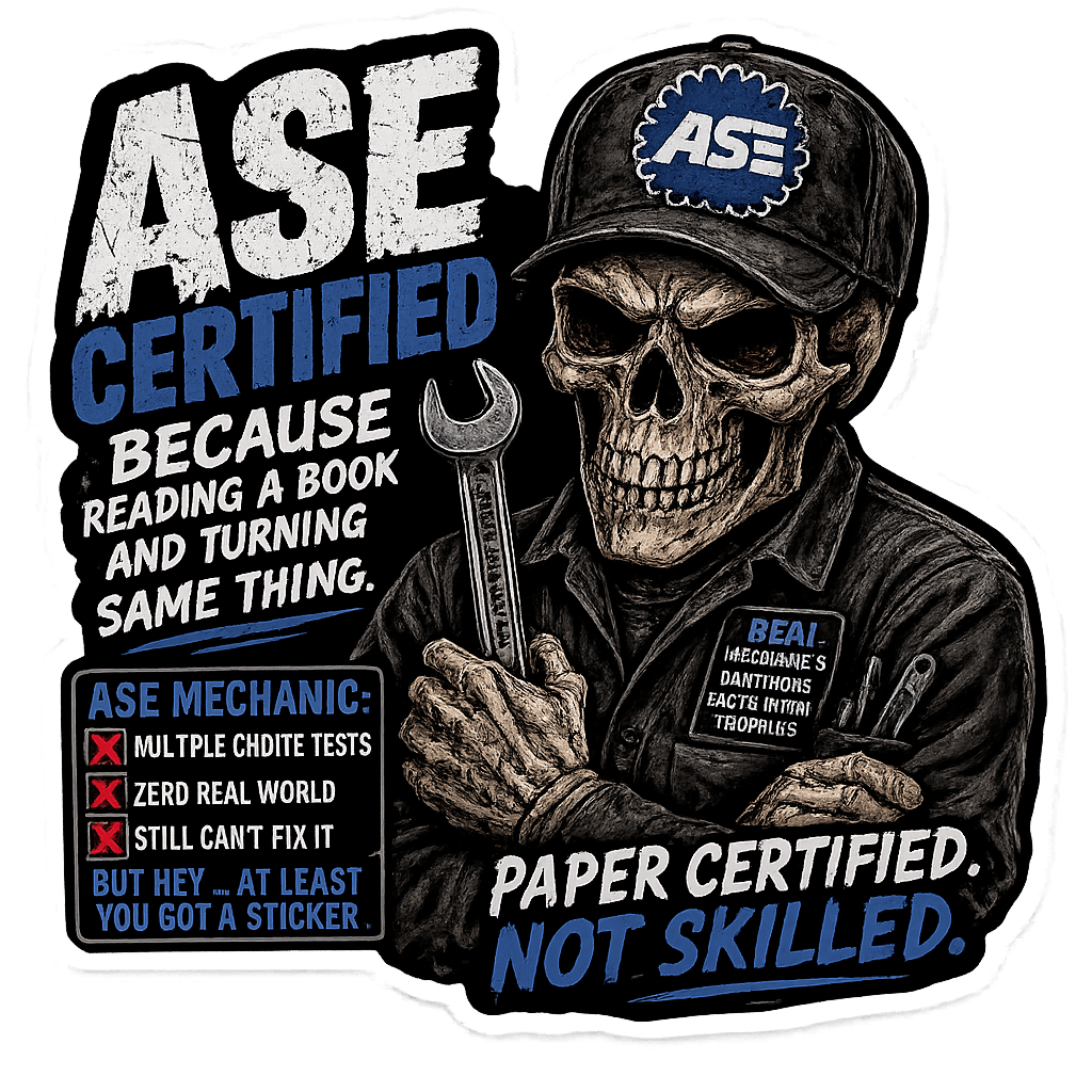 Built for the guys actually turning wrenches, diagnosing problems, and fixing what others guessed at. These designs hit the perfect mix of shop humor, sarcasm, and straight-up truth.